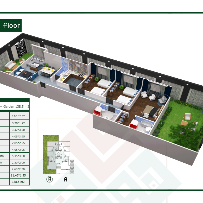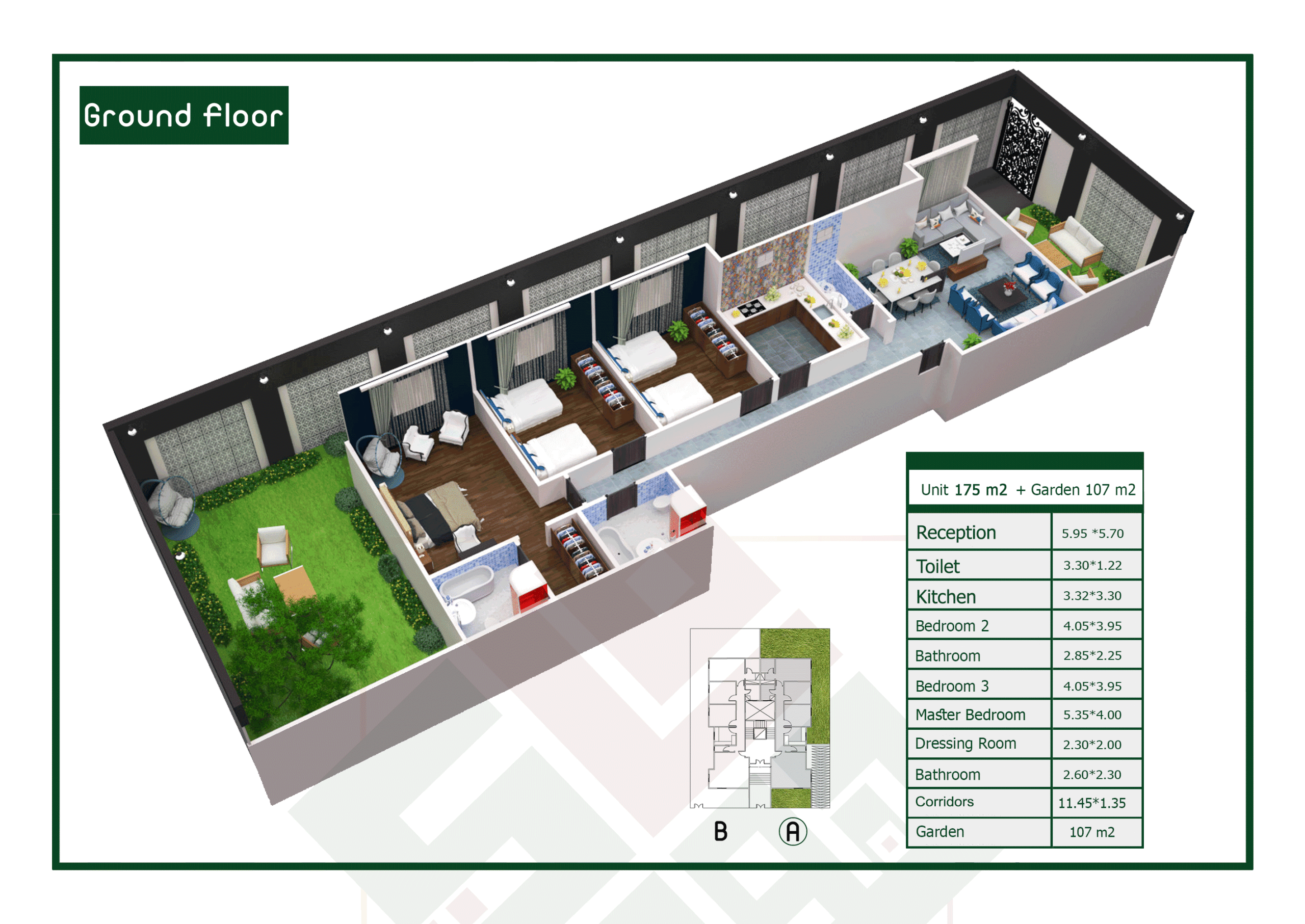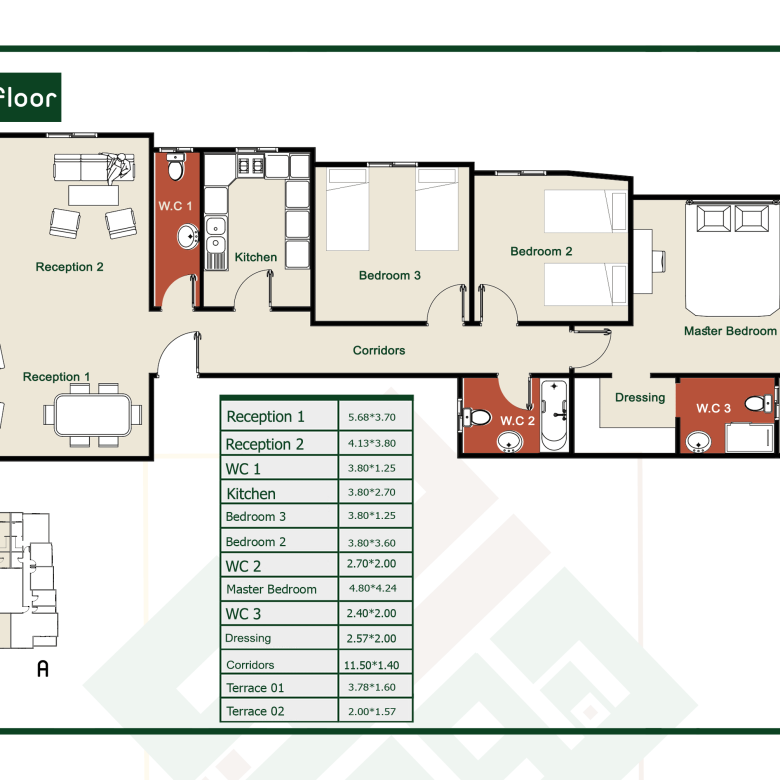 3 غرف نوم – ريسبشن – 3 حمام – مطبخ