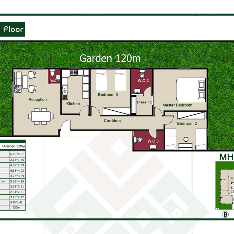3 غرف نوم – ريسبشن – 3 حمام – مطبخ – تراس