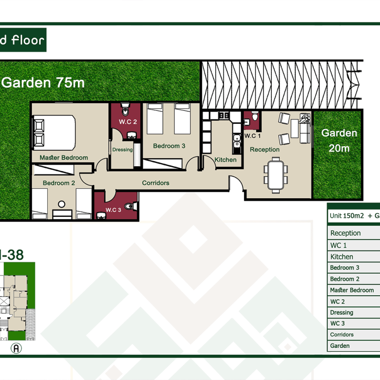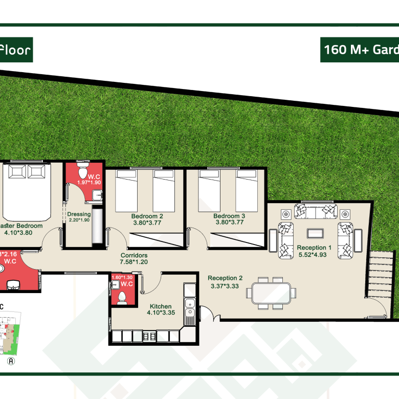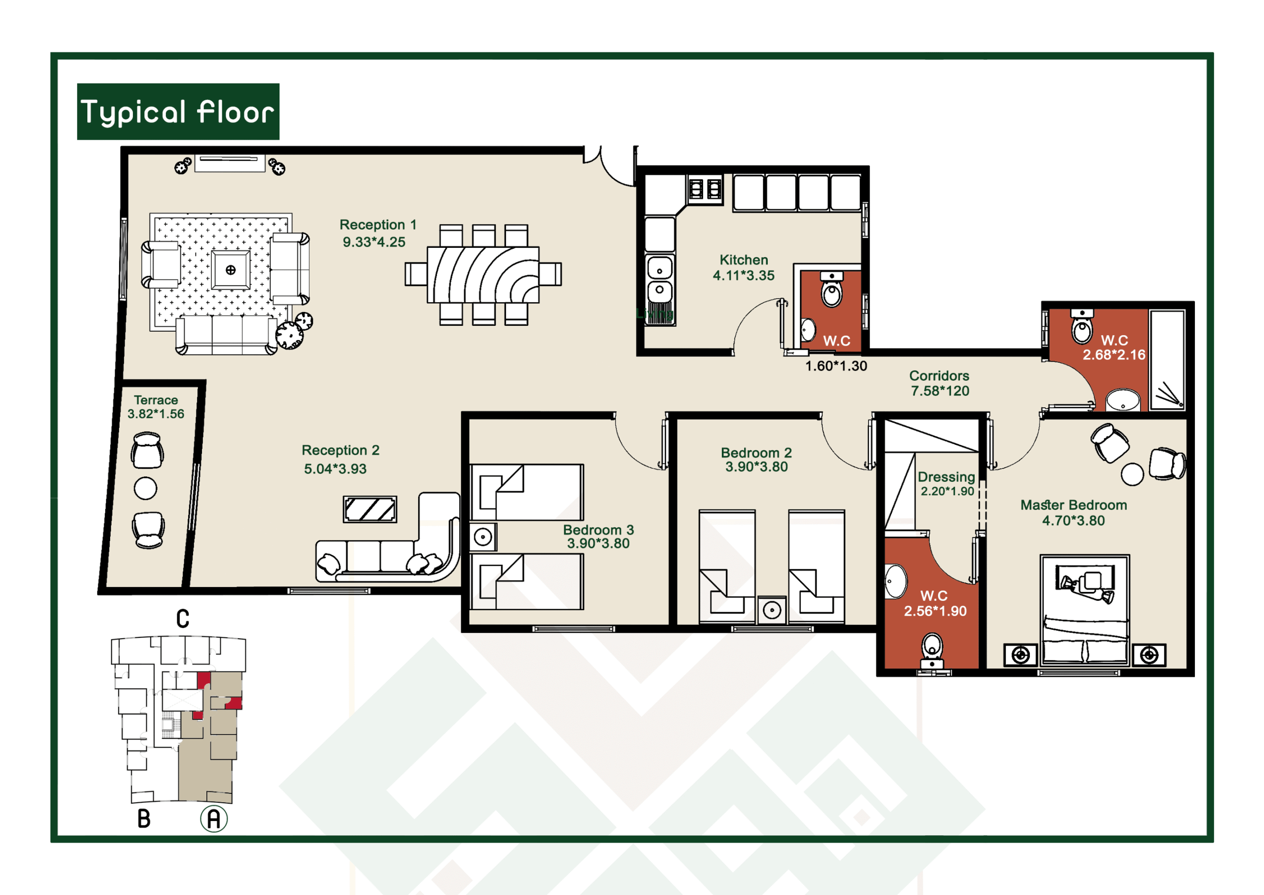 3 غرف نوم – ريسبشن 3 قطع – 3 حمام – مطبخ – تراس