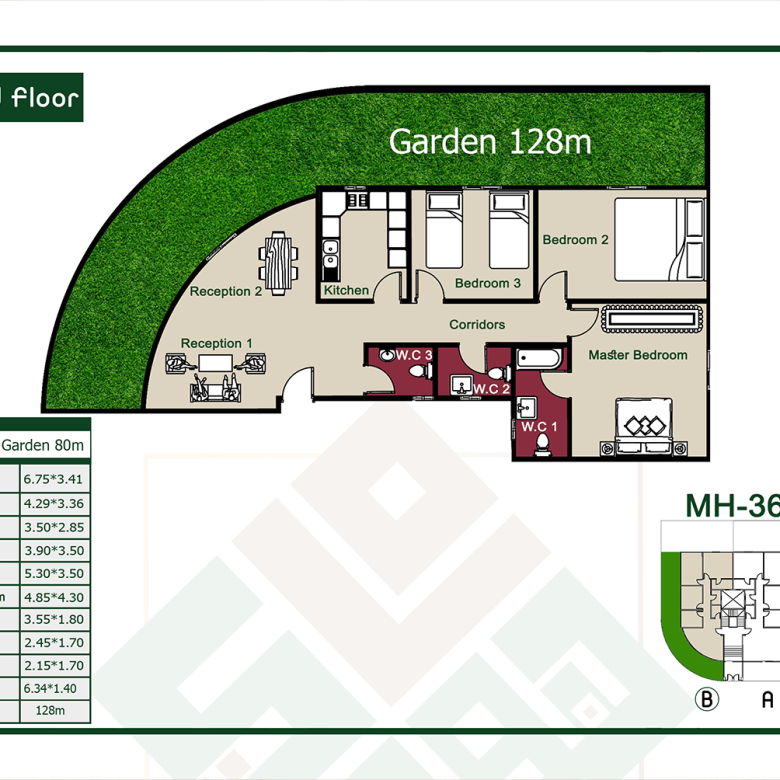 3 غرف نوم – ريسبشن 3 قطع – 3 حمام – مطبخ – تراس